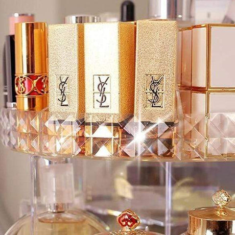 Este organizador de acrílico gira 360 graus para que os cosméticos estejam sempre ao alcance. É fácil de montar e limpar, e possui vários compartimentos e prateleiras para guardar produtos e acessórios.