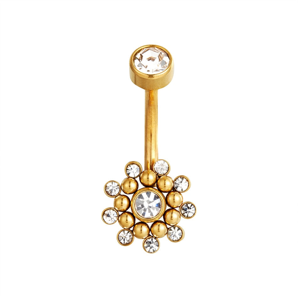 Adicione um toque de sofisticação ao seu visual com este piercing de umbigo de estilo moderno. Perfeito para qualquer ocasião, esta peça delicada traz uma elegância subtil ao seu estilo.
