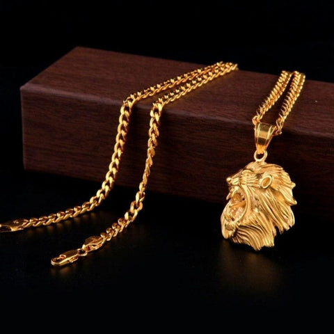 Gostarias de um pendente dourado que represente a tua superioridade como rei dos animais? Não hesites — o nosso pendente de cabeça de leão dourado reforça a tua aura de liderança.
