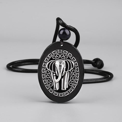 Este é o colar de elefante da sorte mais bonito da nossa coleção. A disposição dos motivos confere-lhe um aspeto tibetano.