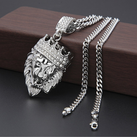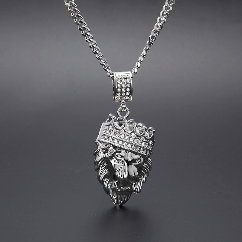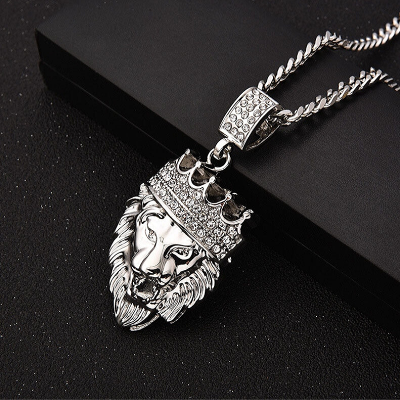 Pendente de leão prateado muito bonito em aço. Use-o como um símbolo da coragem que o leão representa e desperte o leão dentro de você um pouco mais a cada dia. Uma joia para homens de caráter.
