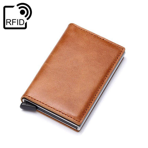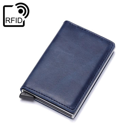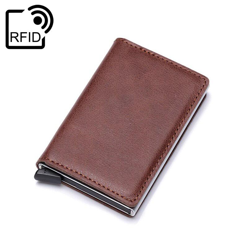 Porta-cartões antimagnetico é uma solução elegante e prática para guardar os seus cartões. Com revestimento em couro sintético e estrutura em alumínio, desliza facilmente para dentro do bolso e inclui proteção RFID para maior segurança.