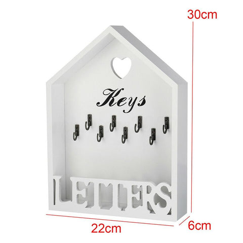Este bonito suporte de porta-chaves parede em forma de casa, feito de madeira, é perfeito para guardar chaves e outros pequenos acessórios. O charme acolhedor deste móvel é complementado apenas pela sua funcionalidade na organização do espaço de arrumação.