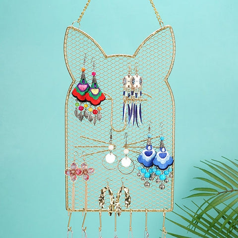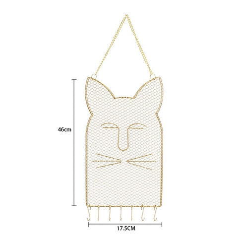 Suporte de joias luxuoso em forma de gato para fixação na parede.