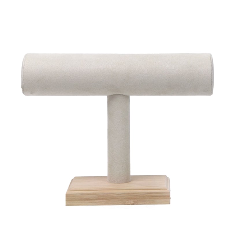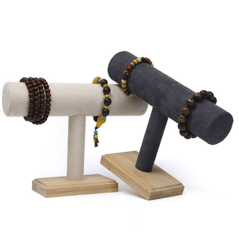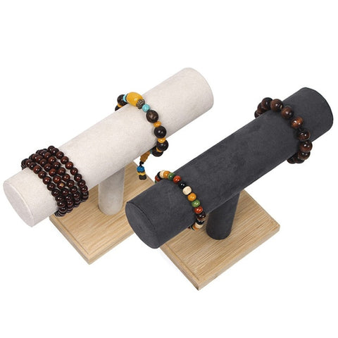 Este porta-relógios feito de madeira e veludo é perfeito para guardar relógios e pulseiras. É fabricado com materiais ecológicos, como o bambu. É um local de armazenamento ideal para algumas pulseiras.