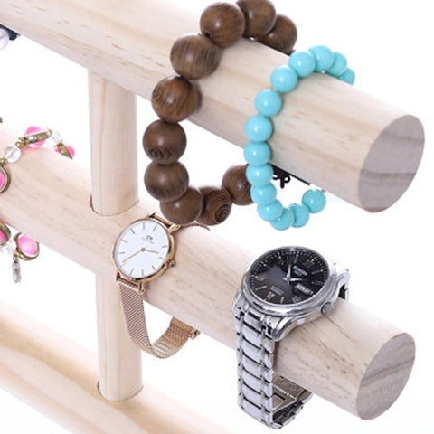 Este porta-relógios grande possui 3 níveis diferentes, permitindo organizar facilmente a sua coleção de relógios e pulseiras. Fabricado em madeira, o seu design simples adapta-se a qualquer tipo de decoração. Se tem uma grande coleção de acessórios, este produto é indispensável!