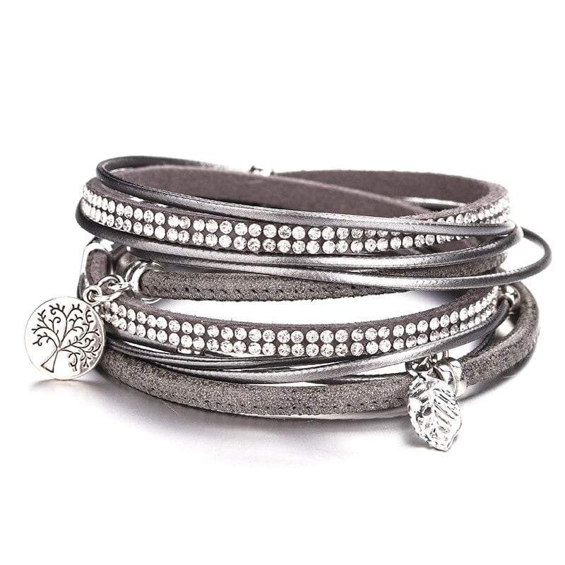 Deslumbrante pulseira cinzenta em pele com Árvore da Vida para mulheres que procuram um visual excecional.
