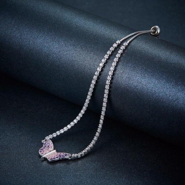 Esta pulseira anos 90 com borboleta apresenta um design elegante e marcante, inspirado na graciosidade natural das borboletas. O seu fio é adornado com cristais de zircónia ao longo de todo o comprimento, e graças ao seu tamanho facilmente ajustável, adapta-se suavemente ao redor do seu pulso. No centro, um encantador pendente de borboleta finamente trabalhado confere o toque final com a sua presença e cores mágicas.