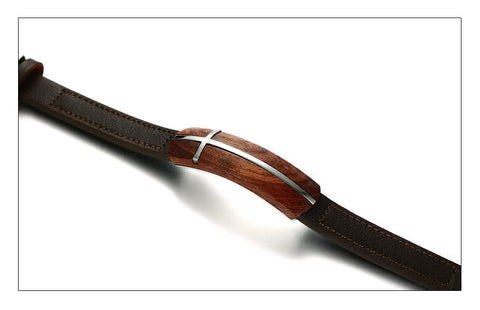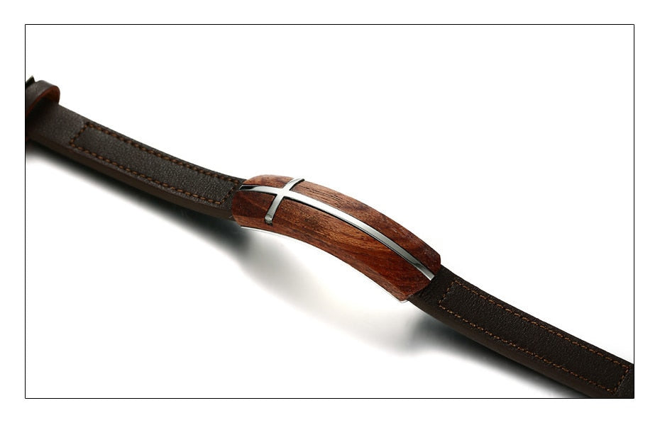 Proclama diariamente a majestade de Deus com esta elegante pulseira cristã, criada pela BelaModa. Feita de couro genuíno de alta qualidade, esta peça destaca-se por um fragmento de pau-rosa cuidadosamente trabalhado pelas nossas equipas, com uma cruz cristã banhada a ouro feita de aço cirúrgico.