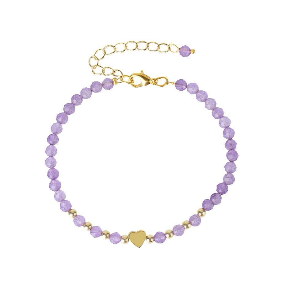 Apresentamos a novíssima pulseira com pedras naturais de ametista e um coração dourado. A ametista é conhecida como a “pedra da sobriedade”, pois ajuda a reduzir o stress e a ansiedade. Diz-se também que favorece o sono e promove um descanso tranquilo. Esta pulseira é o presente perfeito para quem precisa de um pouco mais de paz e relaxamento na sua vida!
