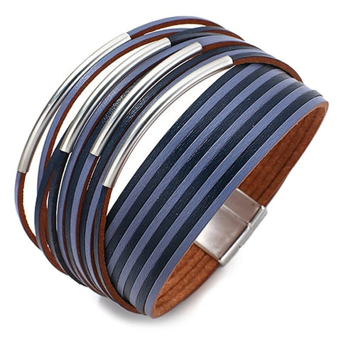 O azul-marinho é uma cor que combina com qualquer roupa e se adapta a todas as ocasiões. Seja para um dia de trabalho, uma noite especial ou um encontro, a pulseira feminina de couro azul-escuro realça o seu visual com elegância no pulso. Este acessório de moda é um elemento indispensável na sua coleção feminina e uma escolha natural para um look casual sofisticado.