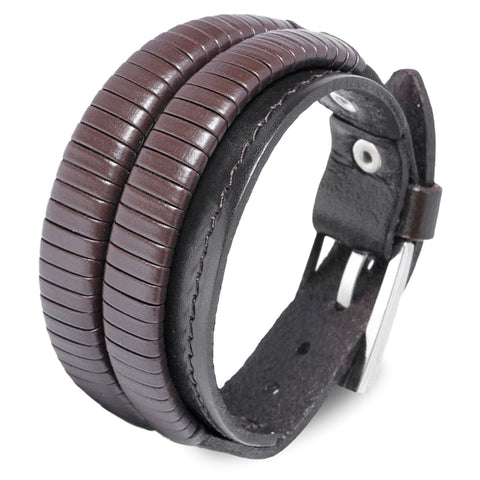 Esta elegante pulseira de couro castanha para homem destaca-se pela sua bela cor.