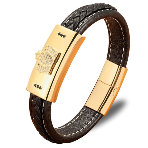 Vai apaixonar-se pelo estilo dourado luxuoso desta pulseira de couro masculina.