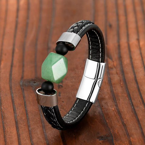 Esta pulseira de couro é feita à mão com materiais de alta qualidade. No centro da pulseira encontra-se uma pedra de jade natural autêntica de elevada qualidade, firmemente entrelaçada numa tira de couro vegetal, permitindo um uso fácil e oferecendo um visual simples mas elegante – perfeito para qualquer ocasião!