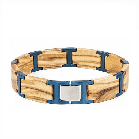 Esta elegante pulseira de madeira e metal azul foi criada com grande atenção aos detalhes. Esta pulseira encantadora deixa uma impressão duradoura em todos que a veem, e será usada por todos aqueles que têm a sorte de possuí-la! O seu design simples e elegante combina com qualquer roupa e ocasião.