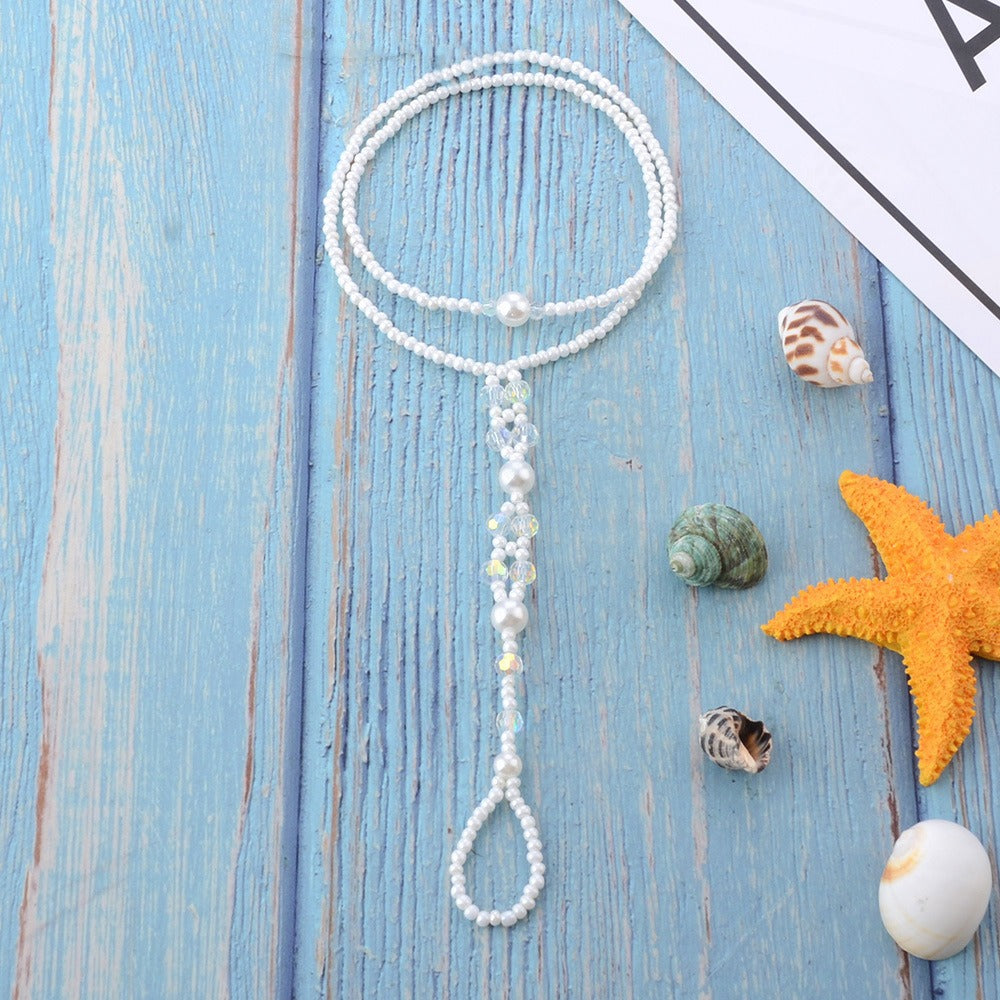 Esta pulseira de pé branca é uma peça delicada que pode ser usada com qualquer tipo de roupa. Combina perfeitamente com vestidos de noite e roupas formais, mas também é ideal para a praia e momentos de relaxamento. Feito de contas, este acessório é elegante e brilhante. É o complemento perfeito para colares ou pulseiras!