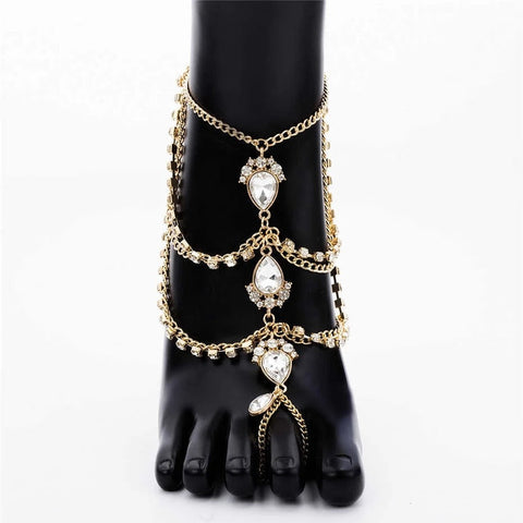 Esta pulseira de pé vintage é o complemento perfeito para qualquer look boémio — estas joias encantadoras adicionam exatamente a dose certa de estilo a qualquer visual. É composta por várias correntes prateadas com cristais cintilantes.