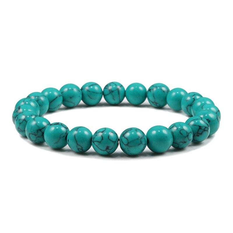 Esta pulseira de pedra turquesa natural é o acessório perfeito para dar um toque de cor ao seu visual. Pulseiras de pedra turquesa natural para homens e mulheres, os acessórios unissexo mais populares com um estilo elegante.