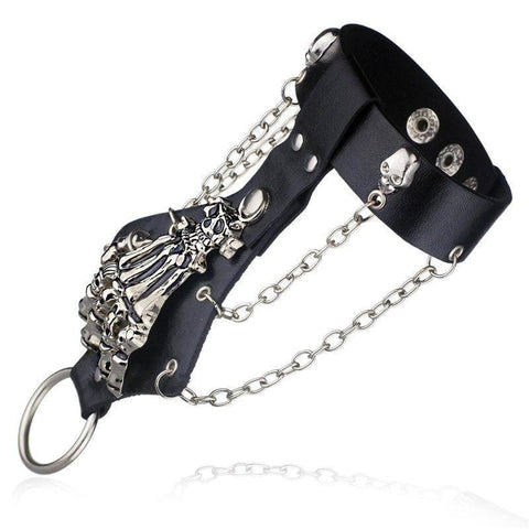Esta pulseira gótica longa é única. Feita de couro adornado com uma Mão Esquelética em aço, é a pulseira ideal para punks e góticos que procuram um estilo fora do comum!