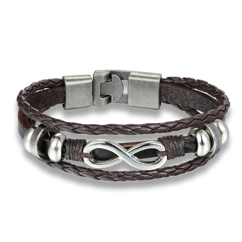 Complete o seu visual do dia a dia com esta pulseira de infinito em couro entrançado, um acessório elegante que os homens com estilo podem usar diariamente. Também é um presente perfeito para o marido, namorado, filho ou simplesmente para si mesmo.