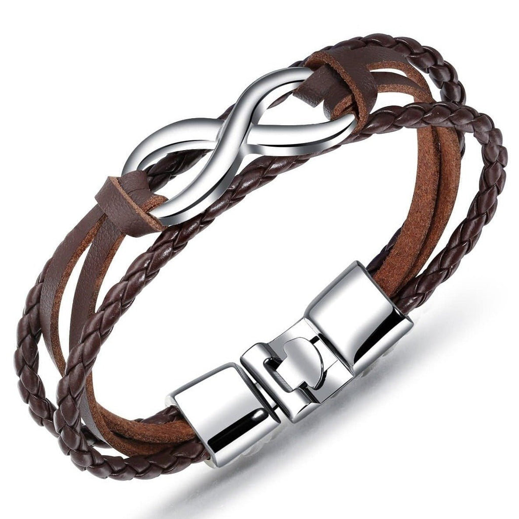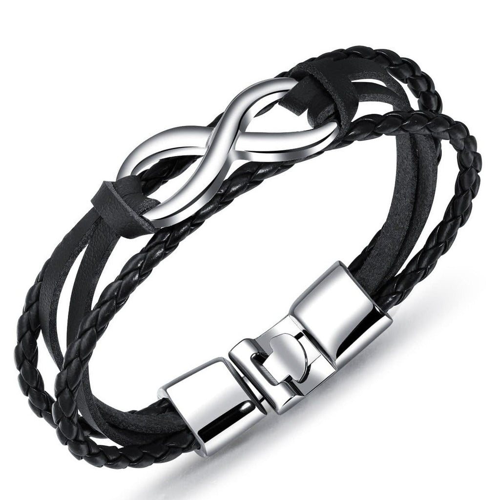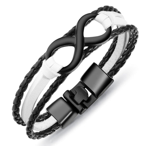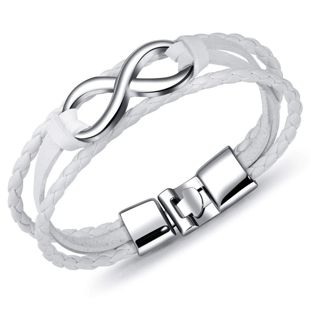 Se procuras um estilo moderno, esta pulseira infinita feita de couro entrançado é para ti. A largura desta pulseira de couro entrançado é perfeitamente equilibrada — nem demasiado fina, nem demasiado grossa. Adapta-se confortavelmente ao pulso da maioria dos homens e das mulheres.