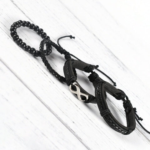 Esta pulseira grossa com símbolo do infinito apresenta pérolas alternadas, um símbolo do infinito em aço numa cor que evoca esperança e uma correia ajustável em couro, garantindo um ajuste perfeito. Esta elegante pulseira com pérolas é a adição ideal a qualquer coleção de joias.