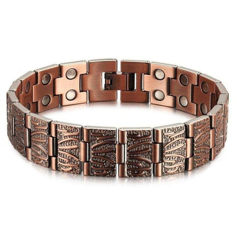 Pulseira magnética com um estilo original em cobre. A ciência por trás do seu funcionamento ainda não é totalmente compreendida. O cobre é incrivelmente eficaz no equilíbrio dos íons positivos e negativos do corpo.