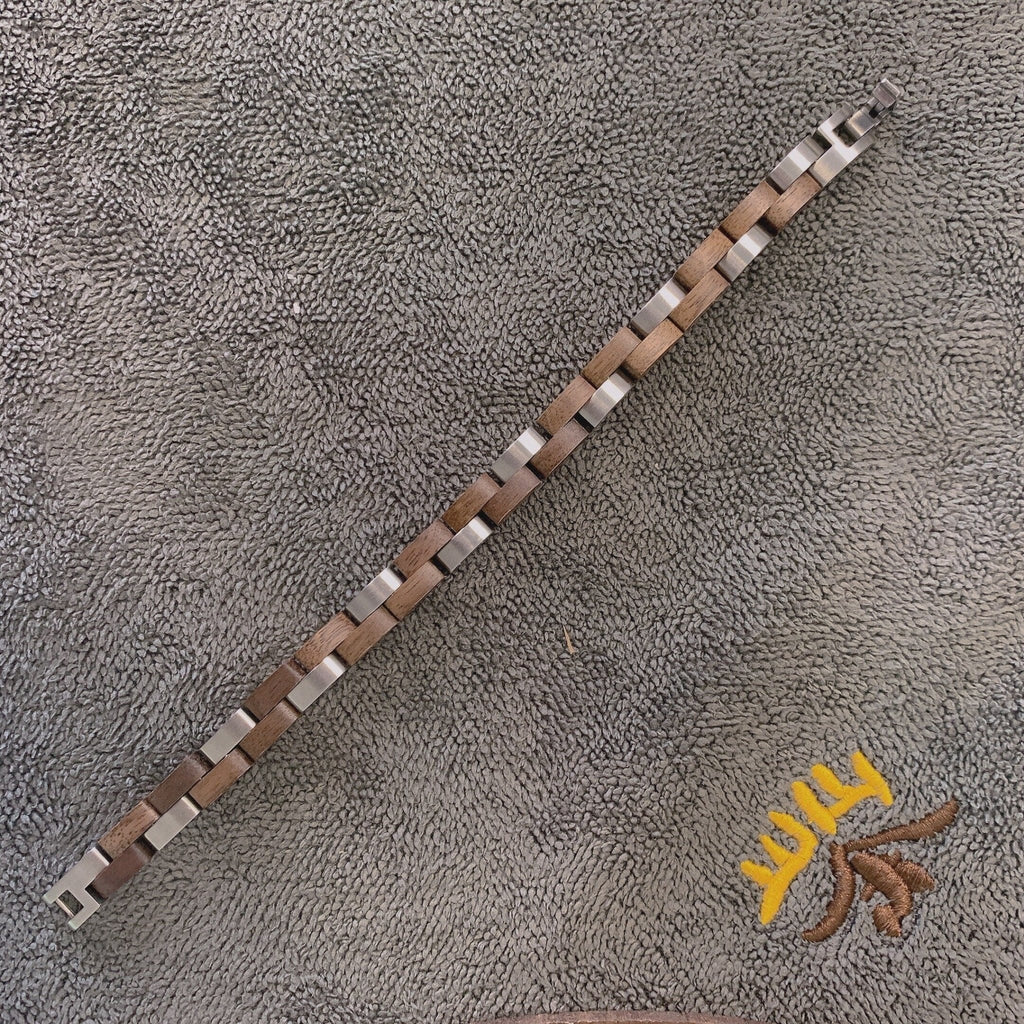 Esta pulseira de madeira com estilo moderno é única e a forma perfeita de dar um toque especial ao seu visual. A pulseira possui um fecho em aço inoxidável que é fácil de colocar e remover.