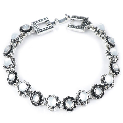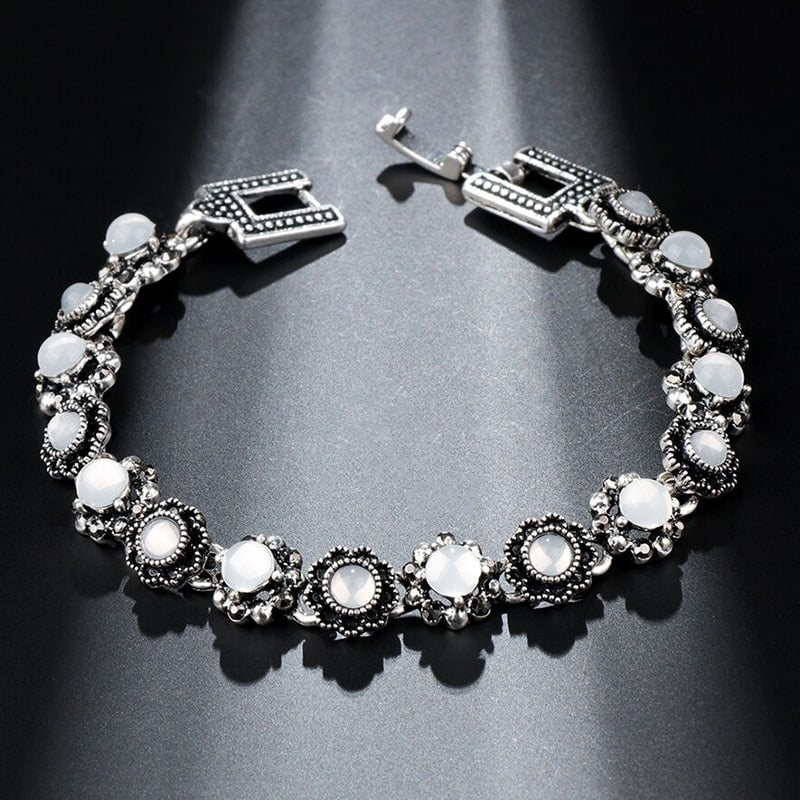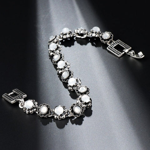 Esta linda pulseira é adornada com autênticas e valiosas pedras lunares brancas. Vai apreciar o estilo extremamente elegante desta joia, que lhe confere um visual único. Um objeto luxuoso que certamente complementará a sua coleção de joias!