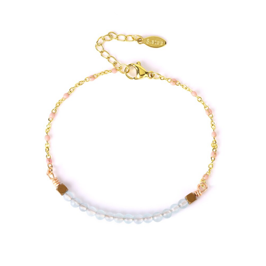 Apresentamos a nossa deslumbrante pulseira de pérolas de água-marinha com um estilo moderno! A água-marinha tem uma afinidade especial com pessoas sensíveis. Pode despertar tolerância nos outros, vencer o julgamento e oferecer apoio àqueles que estão sobrecarregados com responsabilidades.
