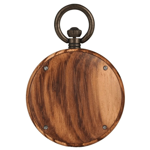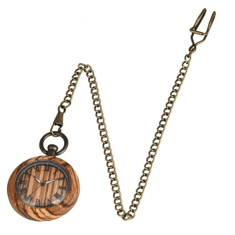Elegante relógio de bolso em madeira com movimento de quartzo.