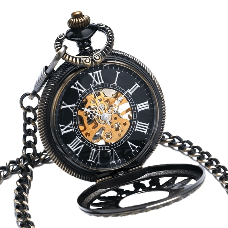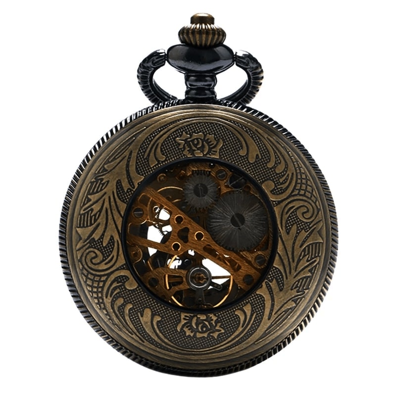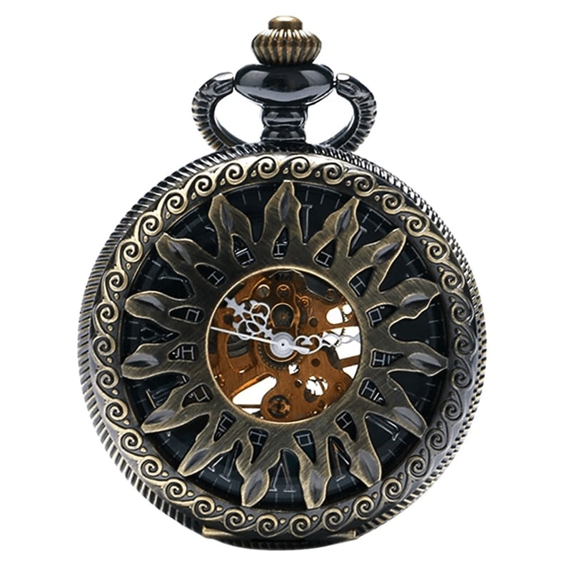 Este relógio de bolso com sol é exatamente o que tem faltado na sua coleção! Fonte da vida, centro do mundo, estrela do dia e da luz, associada ao fogo e ao ouro, o sol é um símbolo divino de força criativa. Graças à caixa esqueleto, pode admirar o mecanismo do relógio de bolso enquanto ele gira no tempo e dá vida aos ponteiros.