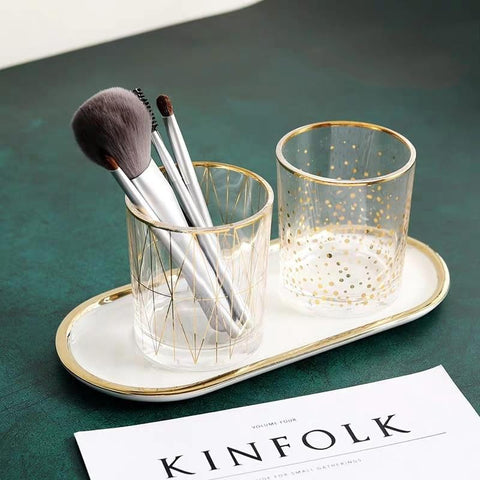 Complete a sua coleção de maquilhagem com este elegante suporte para pincéis em vidro! Traz um toque de sofisticação à sua casa de banho.