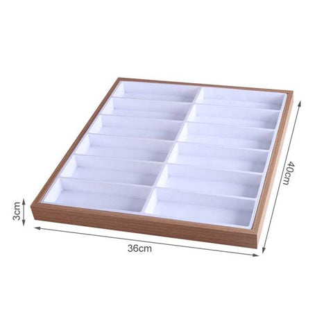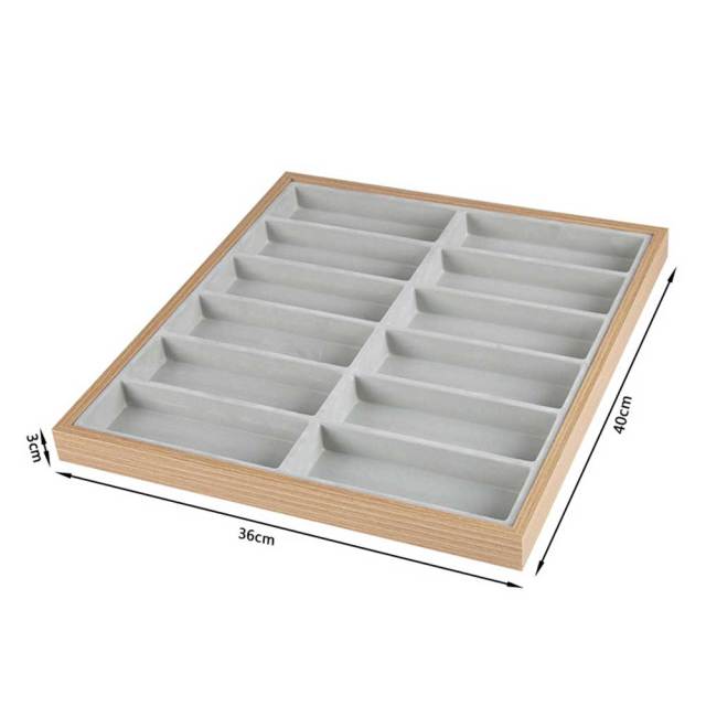 Forrado a veludo e fabricado em madeira, o suporte para 12 pares de óculos é fácil de guardar numa gaveta ou prateleira. Fabricado com materiais de alta qualidade e duráveis.