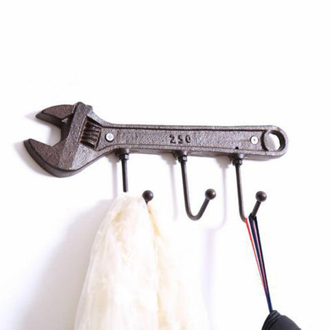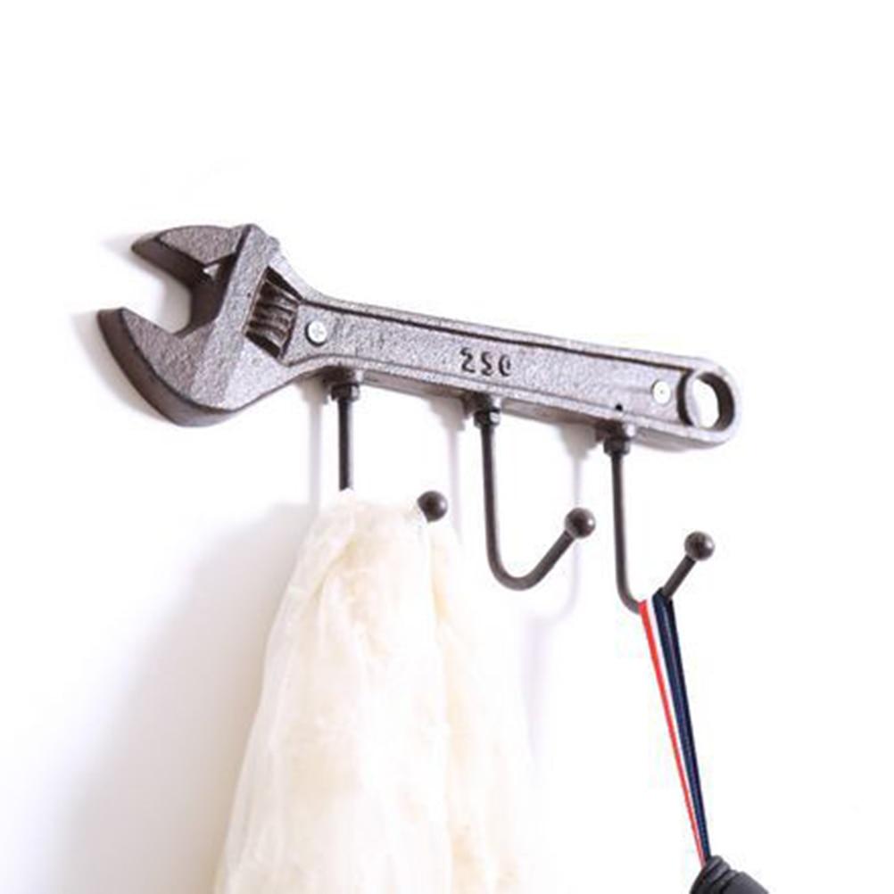 Este suporte para chaves para garagem em forma de chave inglesa, fabricado em ferro forjado maciço, representa um estilo de decoração inspirado no século XIX. Uma excelente adição a interiores vintage ou tradicionais.
